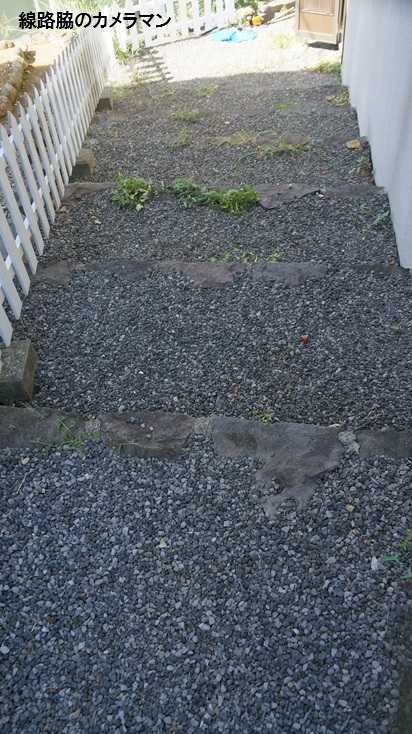 ●草刈り定期的に友人宅の草刈りを引き受けている。4月に階段部分に防草シートを張ったのでその効果は出ている。隙間から少し草が飛び出している程度だ。しかし下ののり面の切り株や防草シートの端からは大きな草が生え茂っている。凄い生命力だ。今回は、電動チェンソーを持ってきたので小枝の下から切ってしまう。1時間ほどで完了し、次は駐車場の植え込みを電動バリカンで切り詰める作業となった。今日は涼しいかと思っていたら、とんでもなく暑い日だった。2時間ほどで終了した。これで冬まで持つのだろうか。