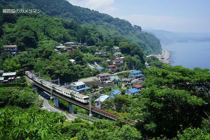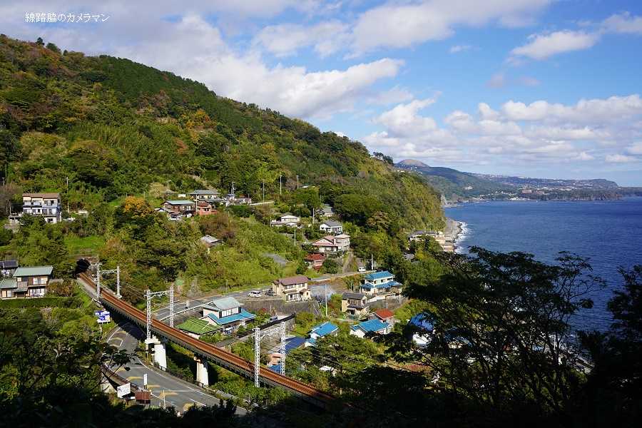 From the old road, there is the best point to take a train while looking down at Kitagawa Port.