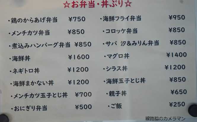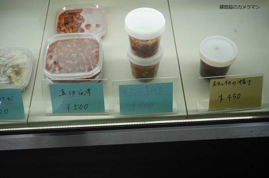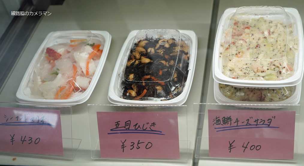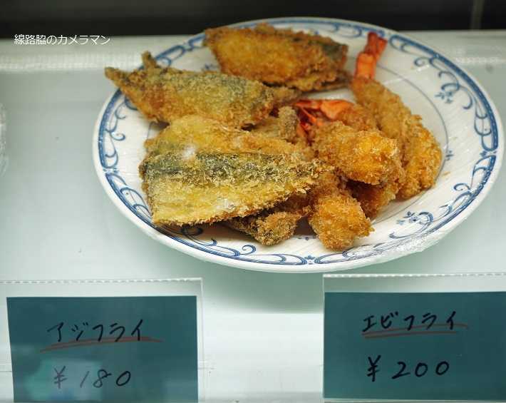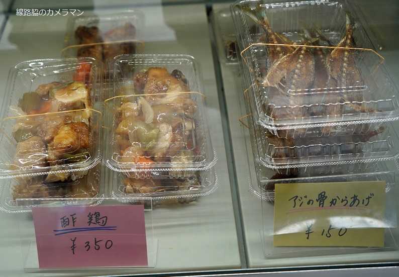 店内のショーケースには、富戸漁港の定置網と提携しているため新鮮な魚介類で作ったフライやコロッケ、から揚げなどのお惣菜とお弁当を販売している。