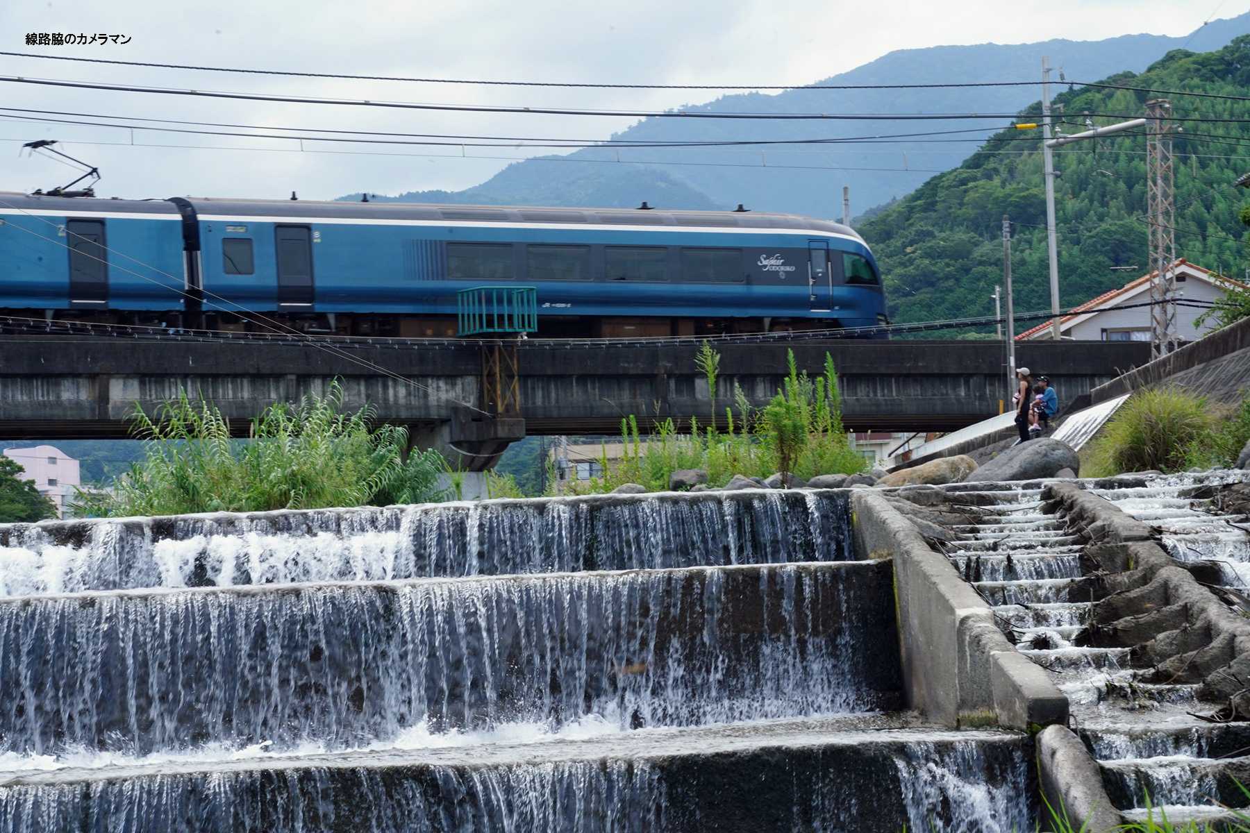 どこで撮影しようかと伊豆高原付近や稲取付近に向かったが、列車待ちの間が暑くて大変なので今回は全体編成をあきらめてある場所に向かった。