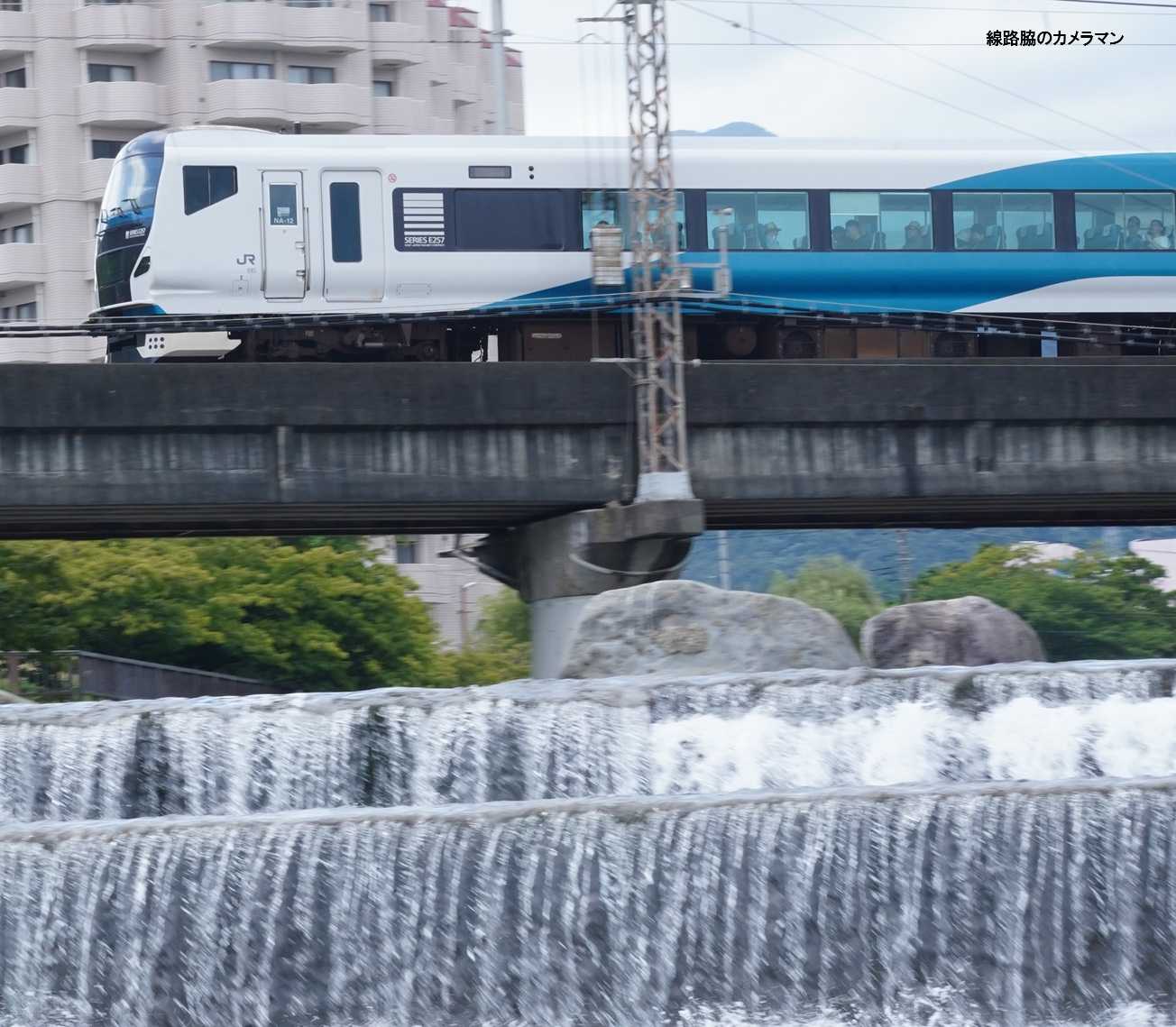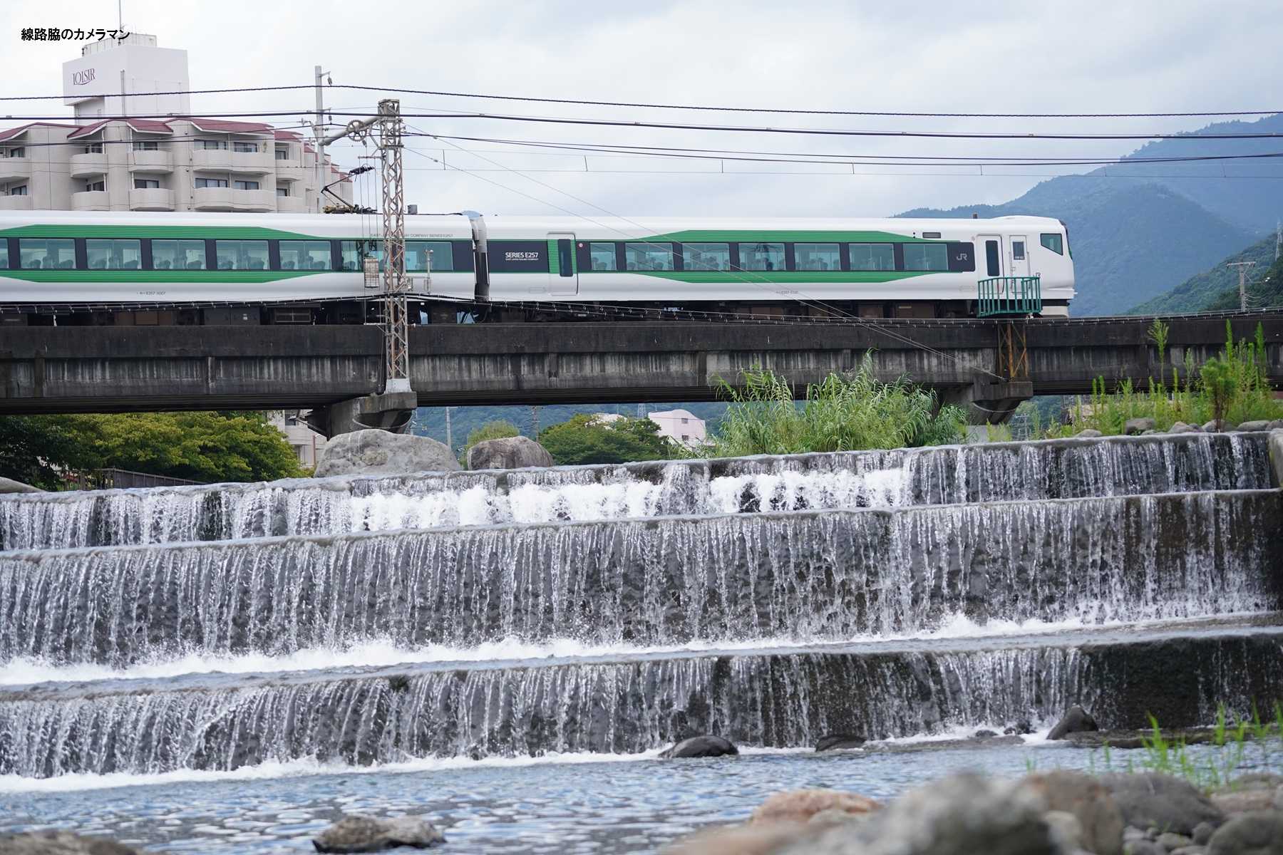 片瀬白田駅付近の鉄橋を狙うので、警備の警察官に了解を得て川床に降りてみた。