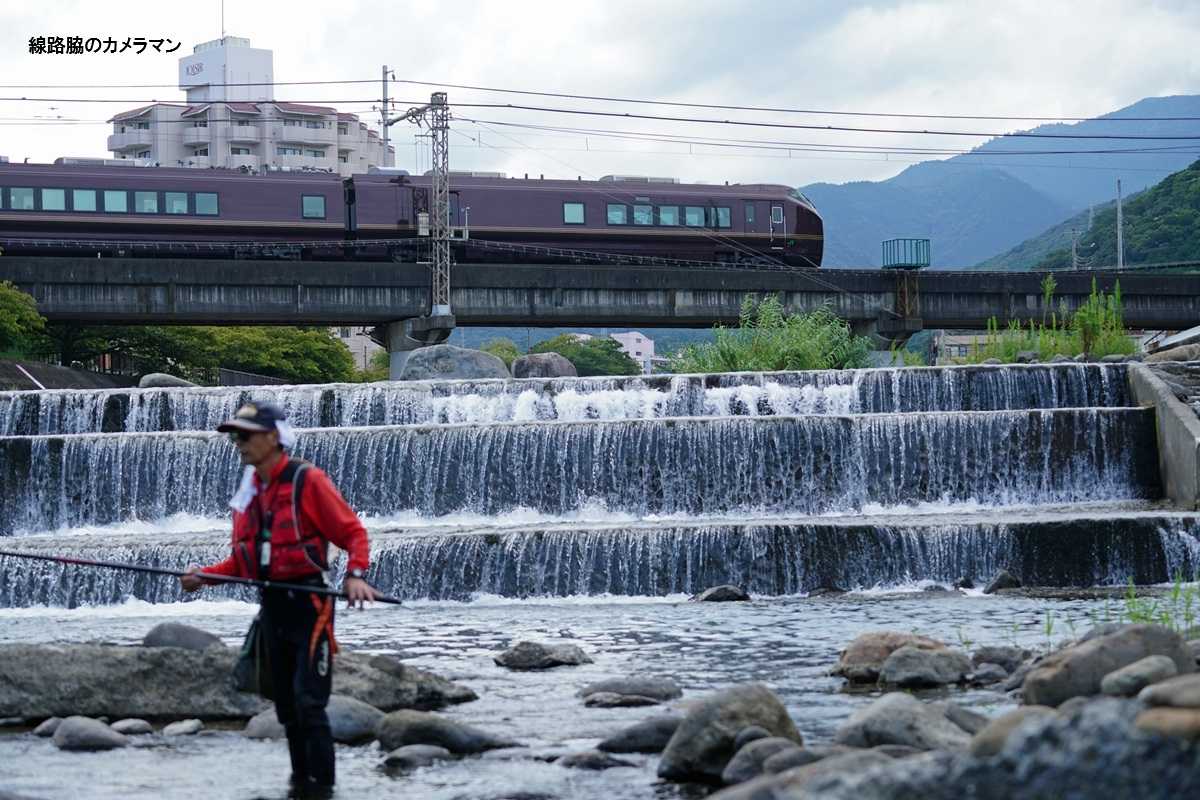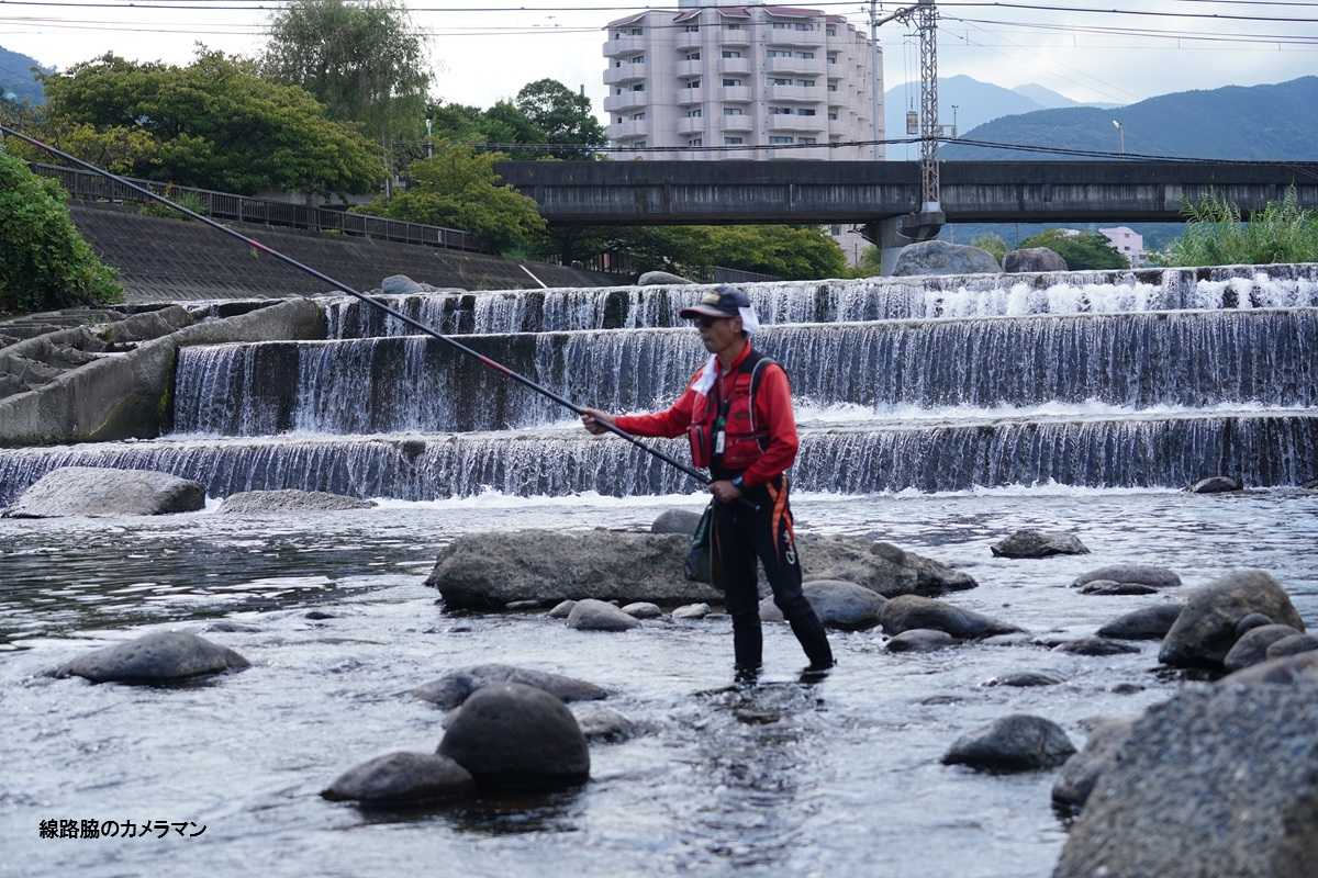 先ほどから鮎釣りをしている釣り人が運よくフレーム内に移動してきた。