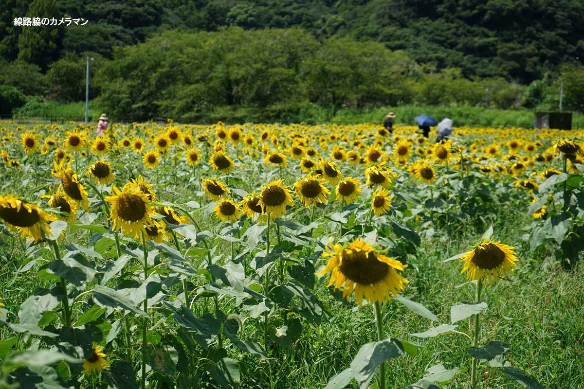 南伊豆の入り口である下賀茂温泉には、田んぼを活用した「ひまわり畑」が目を引いている。