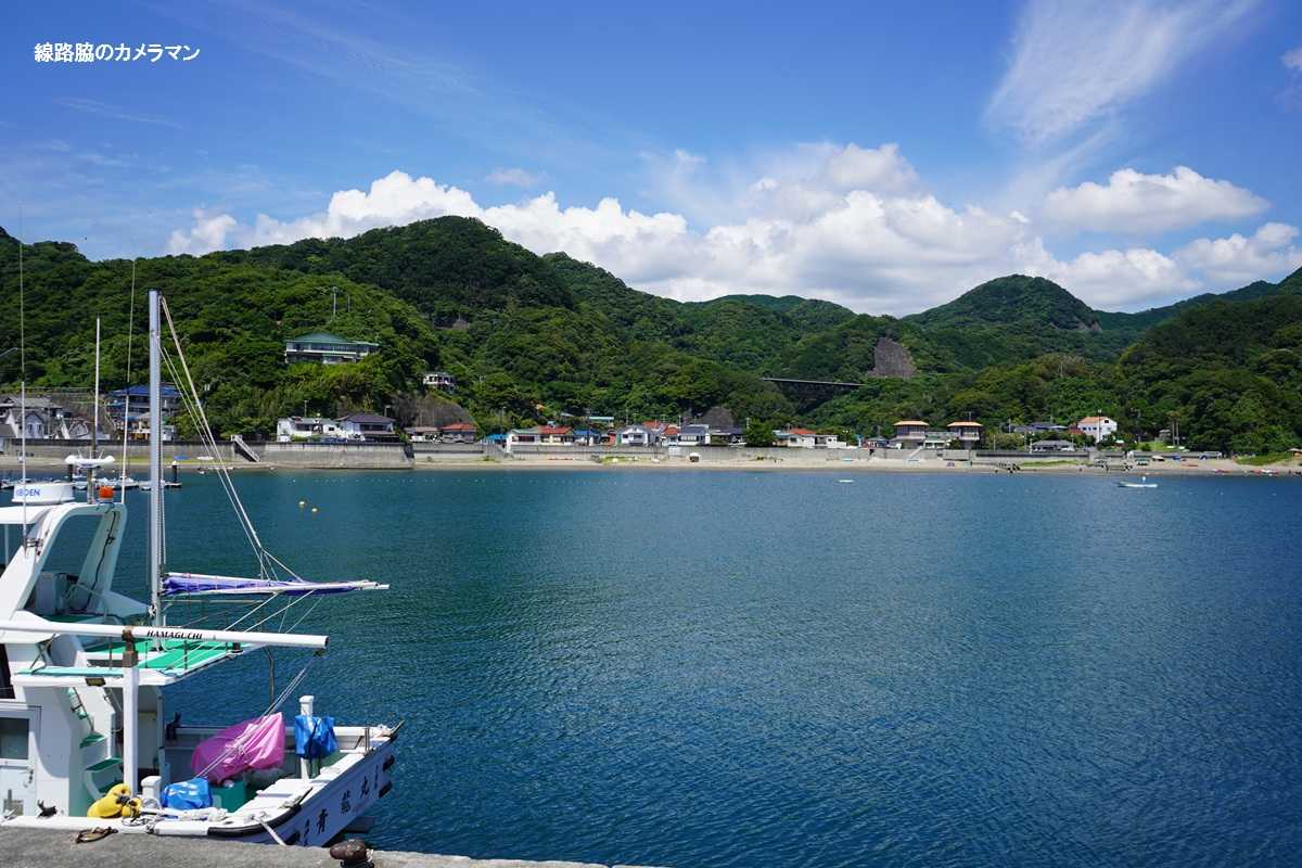 海上アスレチックで賑わう妻良を後にし、対岸の集落である子浦に向かった。