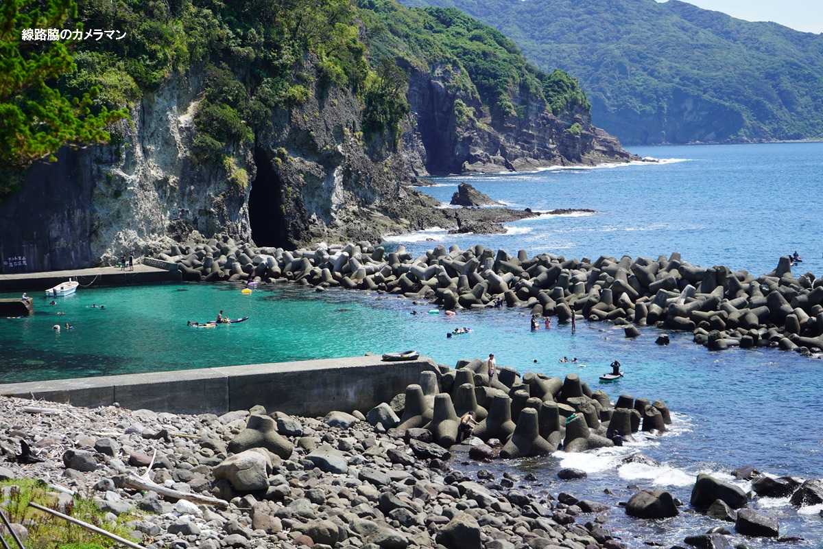 周囲の海はゴロタ石の海岸なので海水浴ができるのは堤防で仕切られた港の中だけだ。