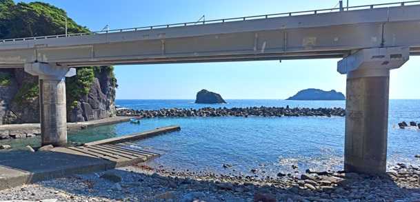 丸山トンネルを過ぎると高い宇留井大橋があり、下には小さな漁港が現れる。