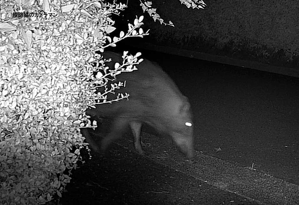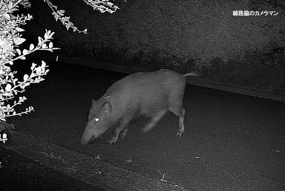 監視カメラにも映っていたこの親子イノシシが犯人らしい。