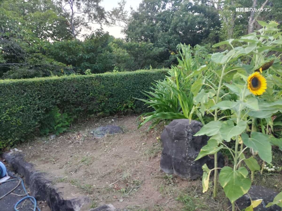 」ではなく、職場の駐車場の脇にある小さな花壇のことです。