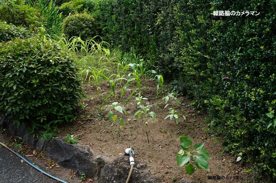 毎年夏になるとヒマワリの種を撒くのだが、今年はトウモロコシの種も撒いてみたところ何とか小さな実が付いていたのです。