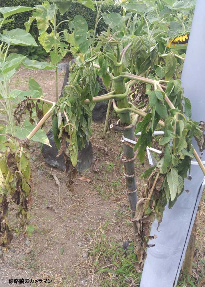 ほどの高さになる「皇帝ダリア」が熱のため萎れて無残な格好になってきたのでこれも処分となった。