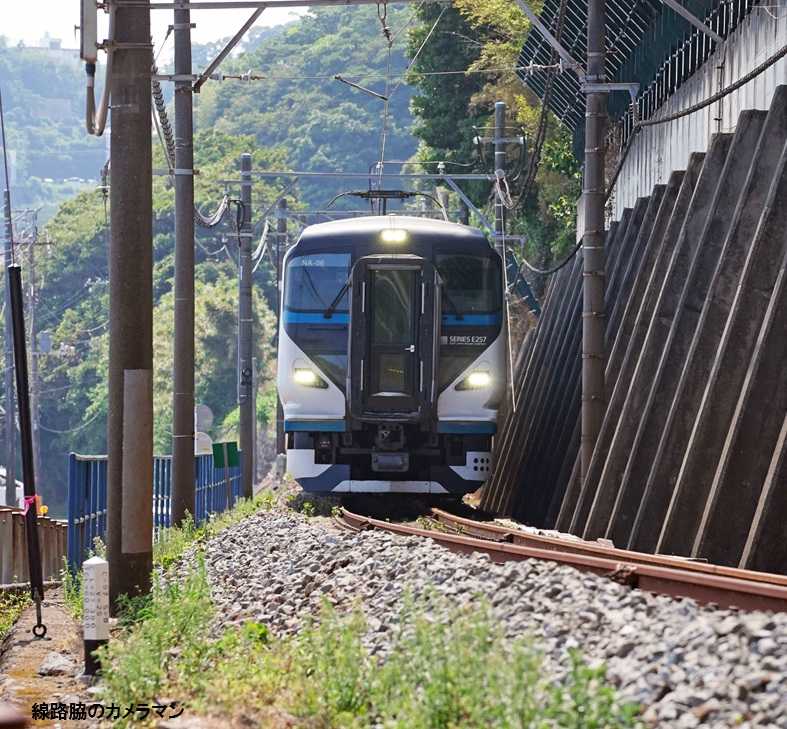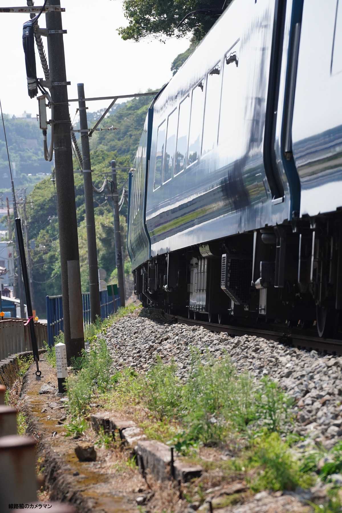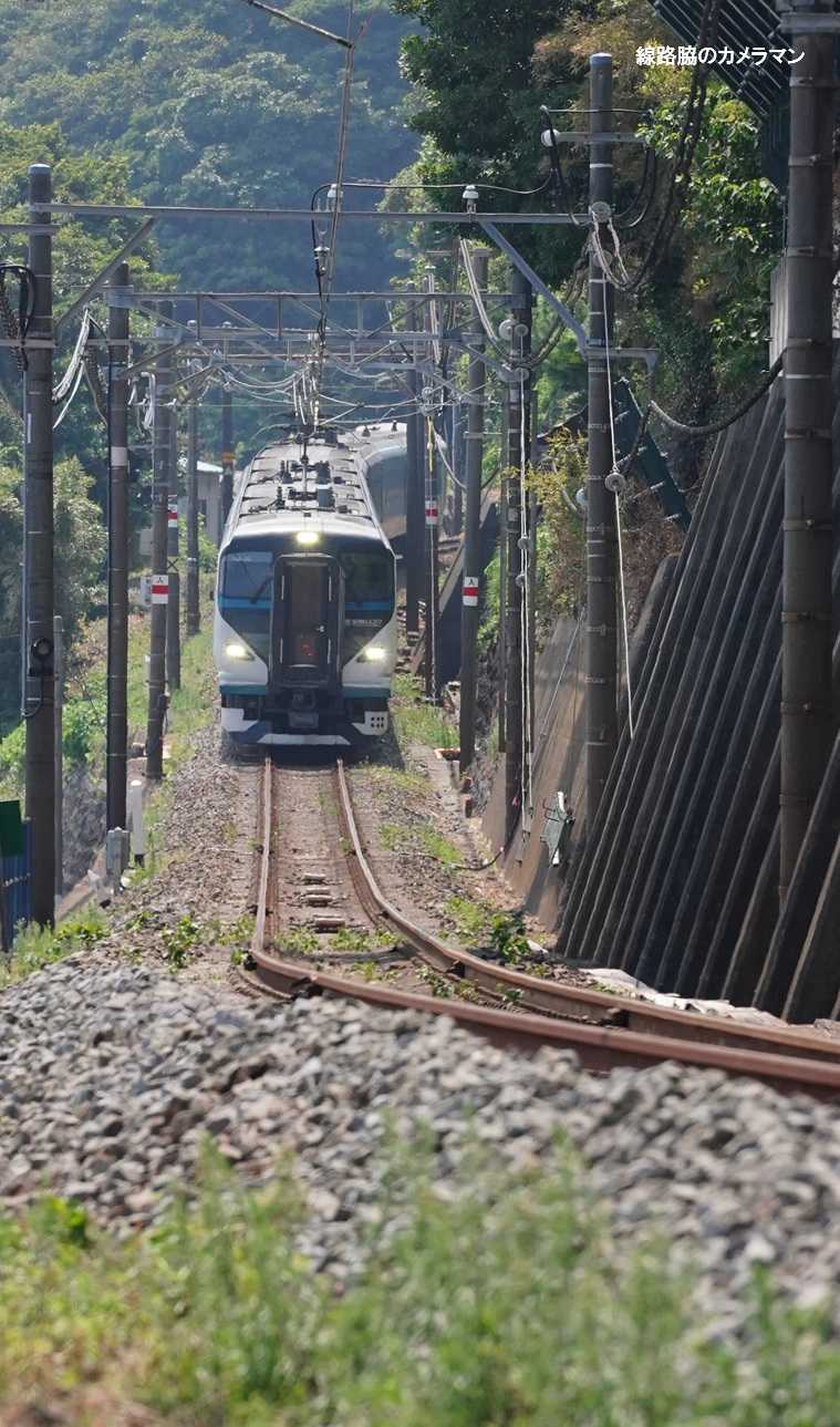 猛暑の中の線路脇のカメラマンはちょっとやりたくないが、この暑さなら陽炎がよく出るかもと思い稲取に向かった。