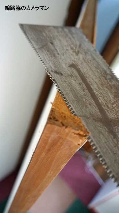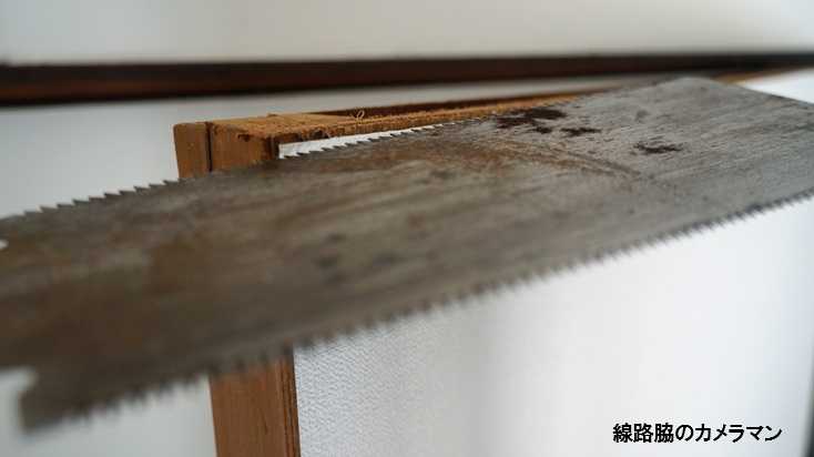 仕方ないので外さないで上部を数ミリのこぎりとカンナで削ることにした。