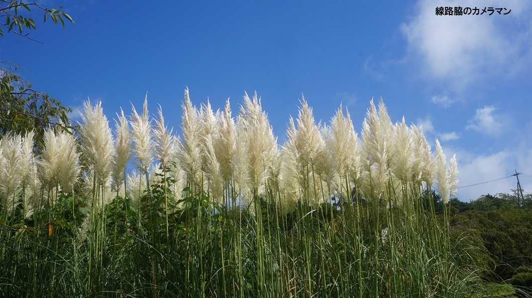 桜の里には西洋ススキの「アガパンサス」が盛りで、青空の下秋風に揺れている。