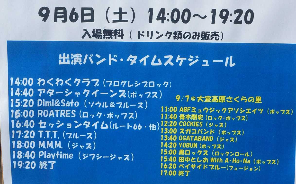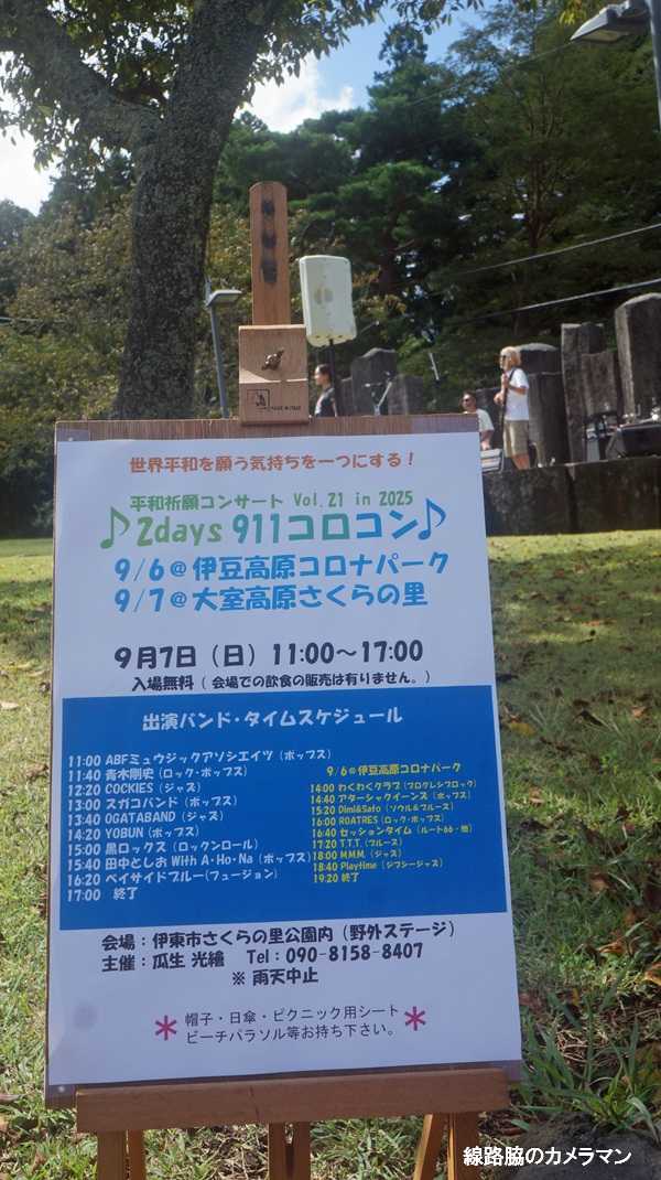 初日の場所はバンドの練習場所となっている伊豆高原の「コロナパーク」で、狭い室内なので満席になっていた。