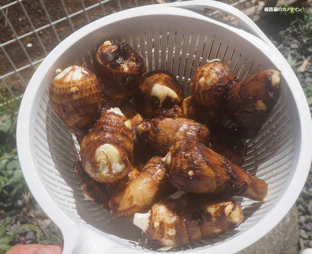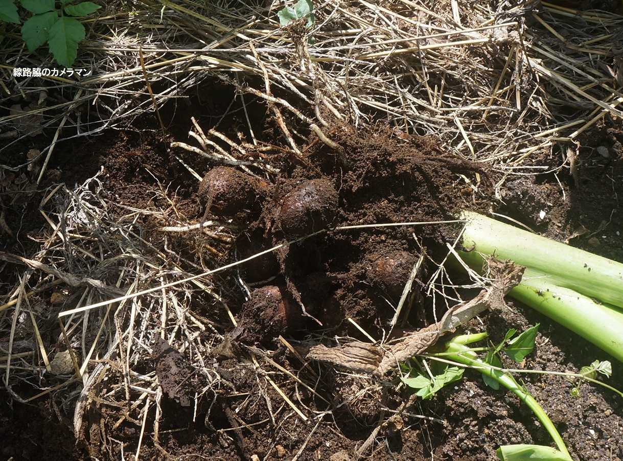 また、畑の里芋の出来具合を見るため、1株を試し堀りをしてみた。