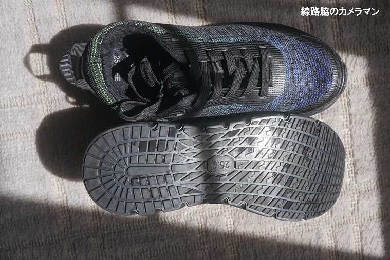 靴底に溝がたくさんあるのでトタン屋根に水を撒いた上でも全く滑らない優れものだ。