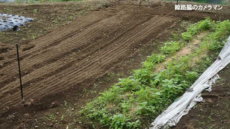 我が家の猫の額ほどの家庭菜園とは比べ物にならないほどの広さで、持ち主から遊休地を借りているとのことだが、広すぎて大変だと言っている。