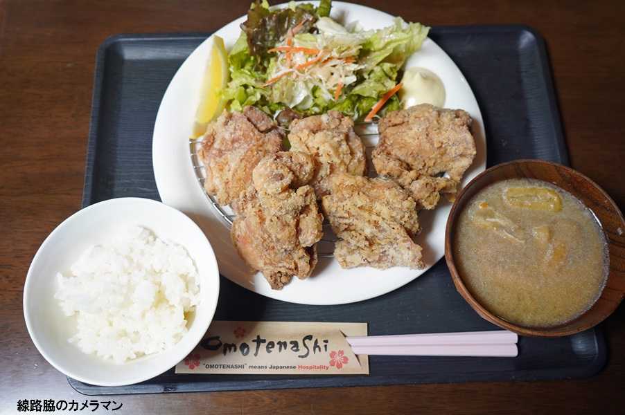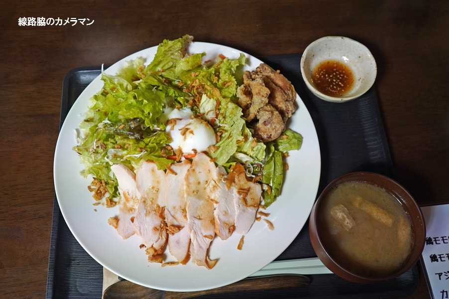 たくさんのメニューから「スモークチキンと温玉」と「鶏もも肉唐揚げ」を注文する。