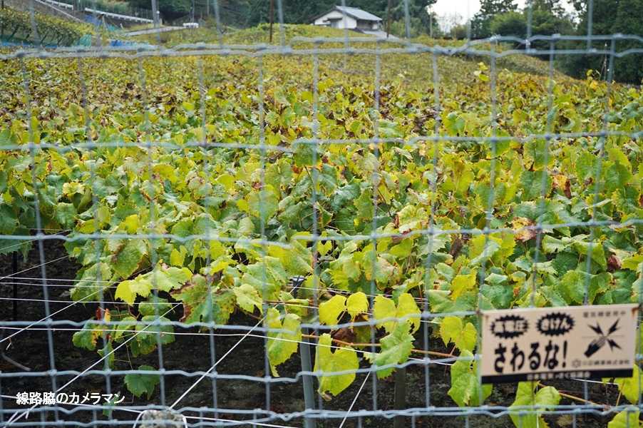 ブドウ畑には動物(人間も?)除けのため電気柵が設けれれている。