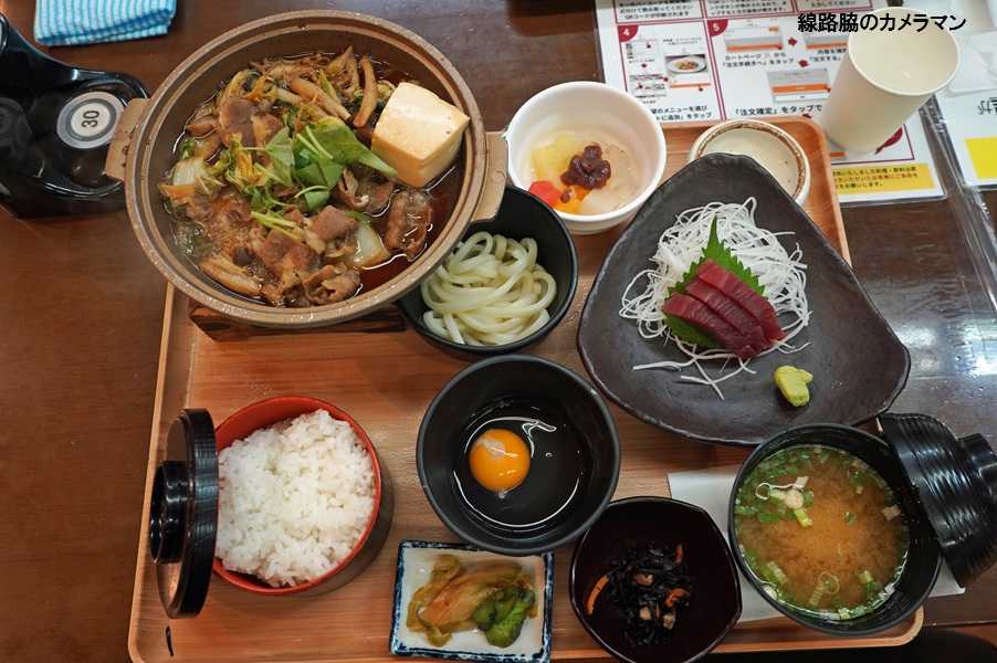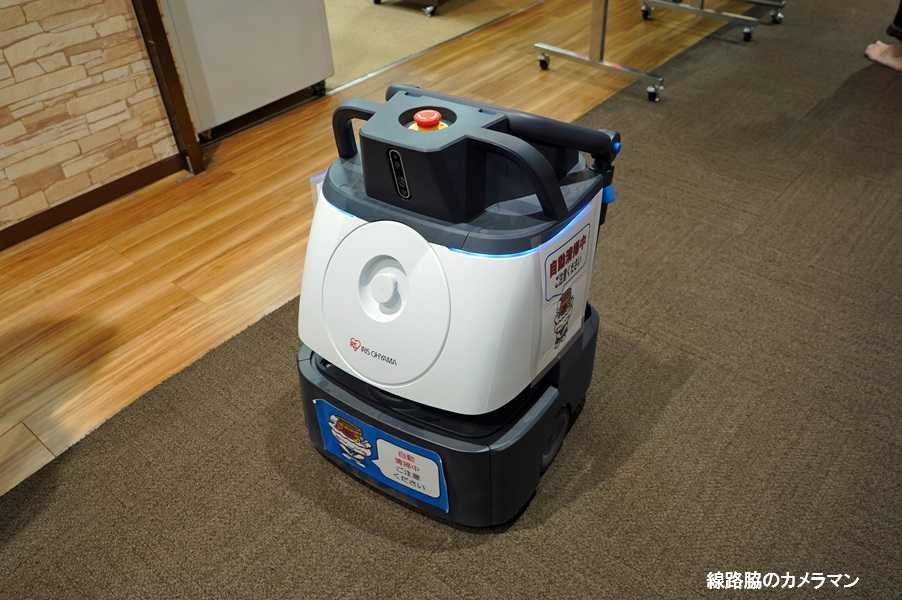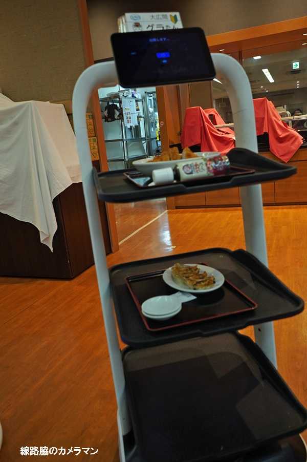 石和温泉のホテル内のレストランでは、床掃除も配膳もロボットが活躍していた。
