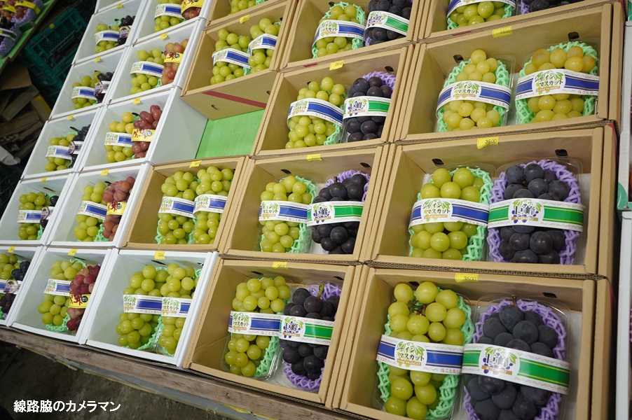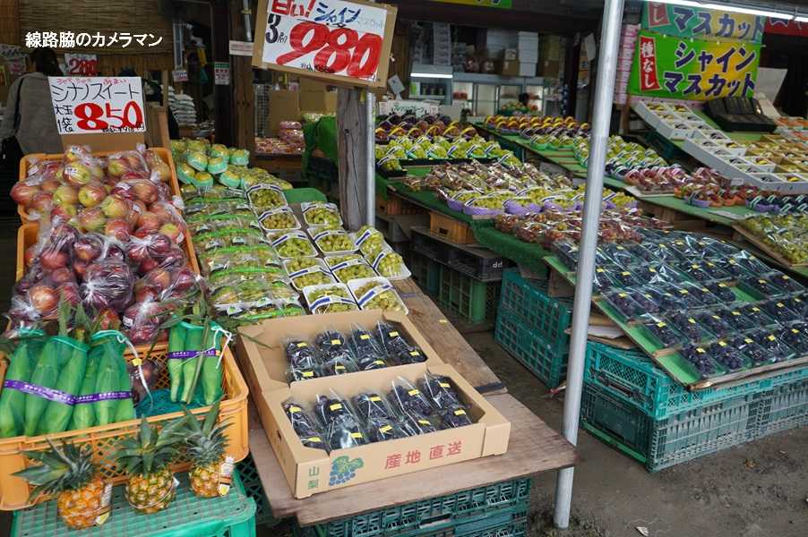 帰りがけに激安青空市場があったのでフルーツを買うのに寄ってみる。季節のシャインマスカットや野菜がお手頃価格で販売されていた。