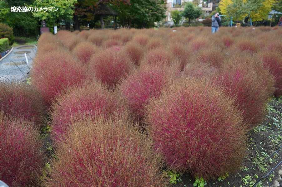 秋は赤いコキアの花畑が見ものだが少し遅かったようだ。