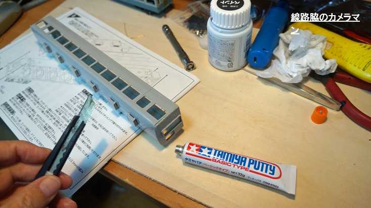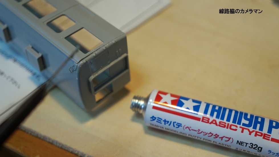 車体の組み合わせ部分の段差を埋めるためパテを使ってならす。