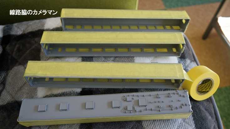 系電車の模型作りの続きをする。
