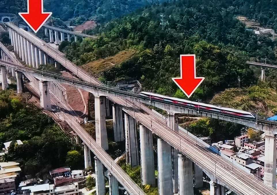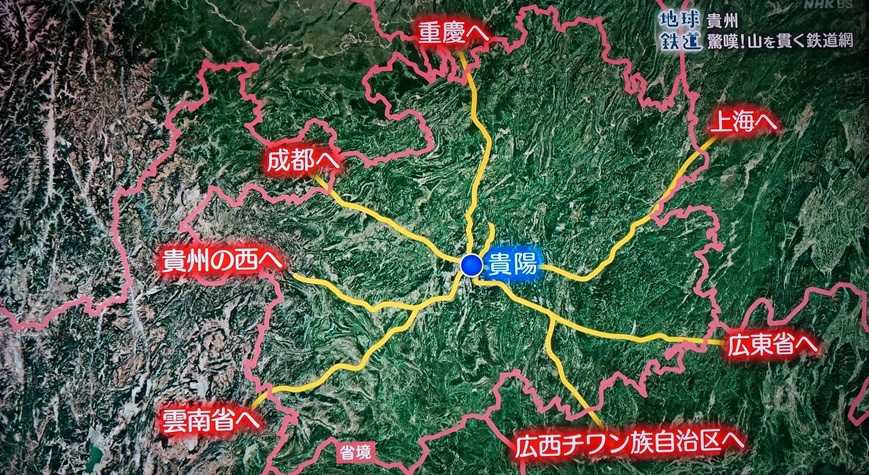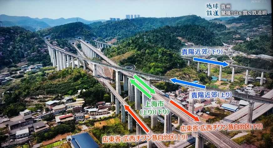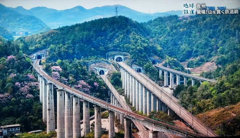 貴陽駅で5本の路線が交わるのだが、この場所からは一つの山から5路線のトンネルを眺めることができる。