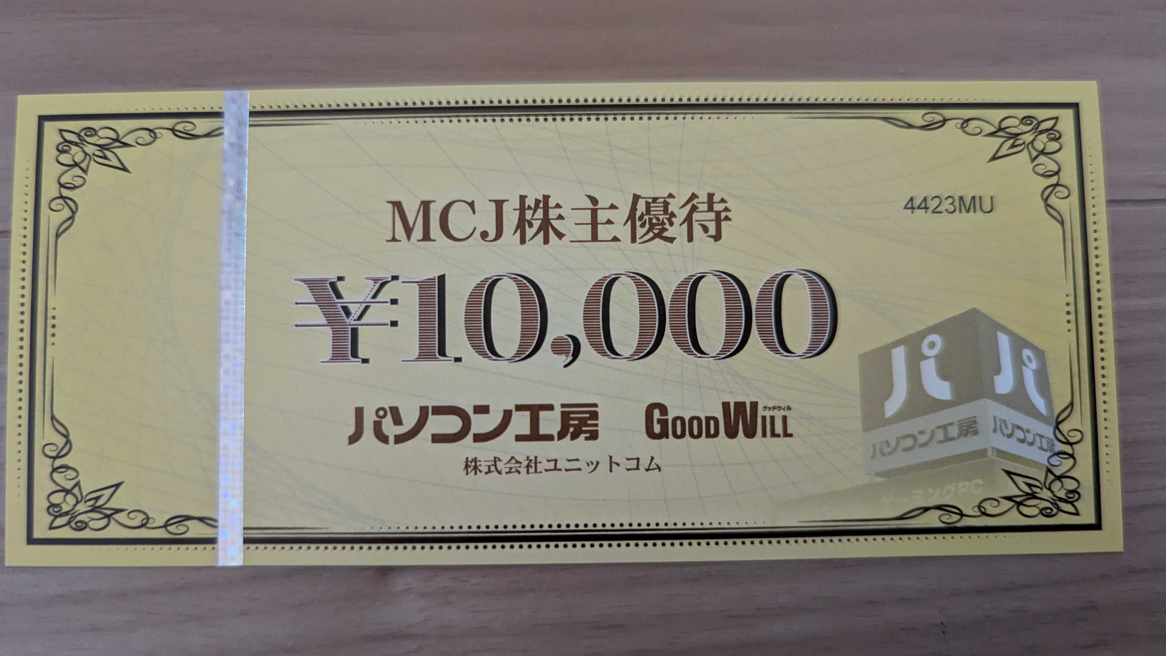 今日は最近?注文した優待が到着したのでその紹介です。6670 MCJここは以前届いた優待案内でパソコン工房の商品券を注文していました。株主優待案内到着 6670 MCJ | へっぽこトレーダーの徒然日記 - 楽天ブログ実際に届いたものが以下になります。10000円分ですね。あとお礼状も入っていました。私も前にPC組んだのが7年前ですので、いい加減新しいの組もうと思っていますので、それの足しにしようと思います。