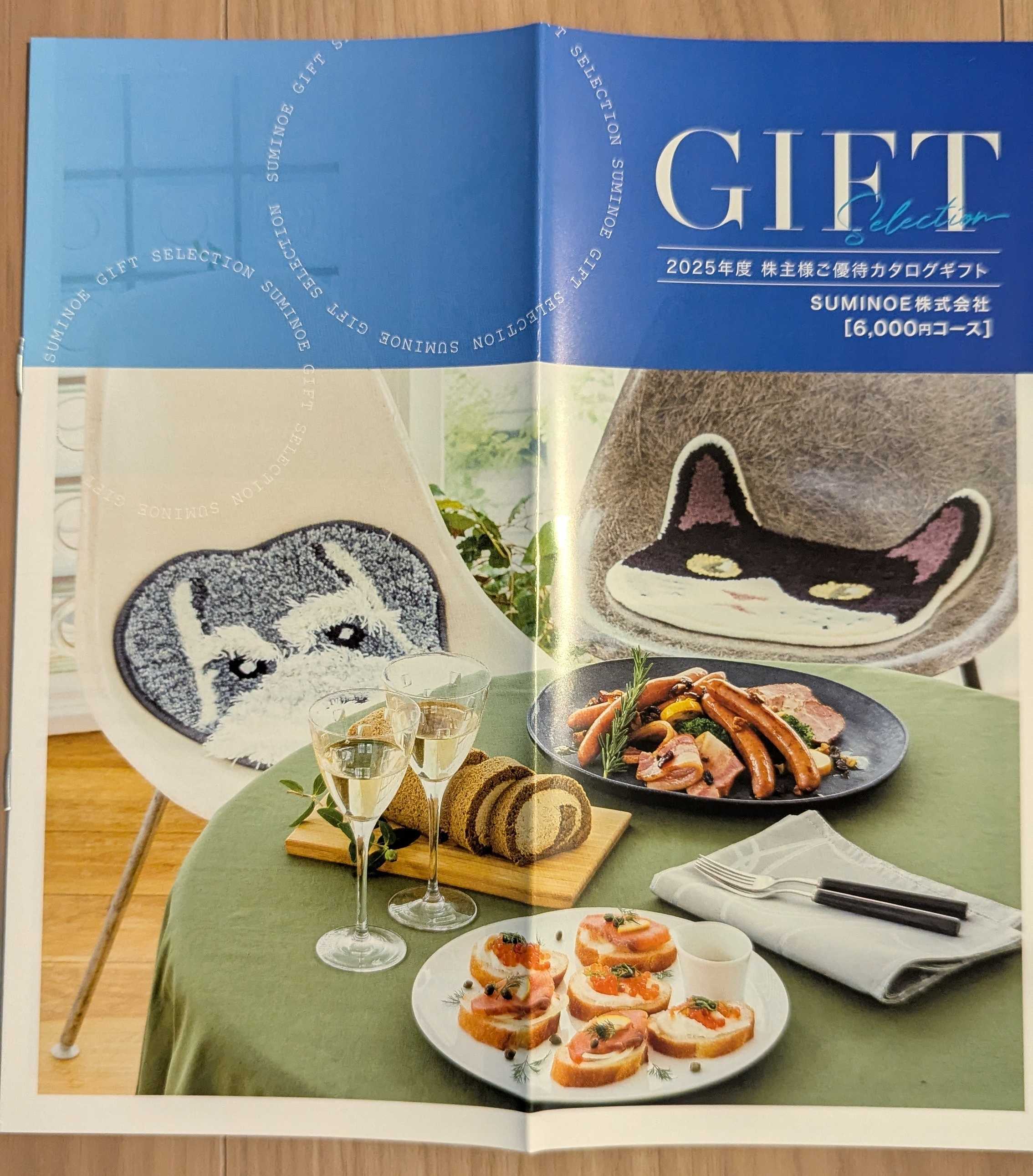 今日も最近届いた優待を紹介していきます3501 SUMINOE 今回紹介するのはカーペット大手の住江織物です。5月優待2025/9/5時点の株価は1205円、予想配当利回り3.57%(43円)です。今期予想PERは10.64、PBRは0.51です。優待内容は保有株数に応じたオリジナルカタログギフトです。具体的には以下になります。300株以上 3000円相当のオリジナルカタログギフト400株以上 6000円相当のオリジナルカタログギフト1000株以上 10000円相当のオリジナルカタログギフト私は400株保有ですので、6000円相当のオリジナルカタログギフトを頂きました。実際に届いたものが以下になります。中身は自社製品とグルメが主体です。グルメは有名なところが多いですね。私はこの中でサーモングルメセットを注文しました。申し込みはWebからできるので楽ですね。届いたらまた紹介しようと思います。さてSUMINOEですが、繊維製品の製造を主力とする企業であり、特にカーペットやインテリア製品で知られています。国会の赤じゅうたんの納入実績もあり、品質と信頼性に定評があります。また、自動車や鉄道の内装材にも力を入れており、多岐にわたる事業展開を行っています。2025年度5月期の決算は増収減益で着地しましたが、2026年度も増収増益予想です。海外に工場を新設し、日系の自動車メーカーだけでなく、外資系の自動車メーカーへの供給拡大を目指しているようですので、今後に期待です。バリュー投資家の観点からみるとPER、PBRから見ても割安で、配当も高く今後に期待が持てる銘柄です。優待投資家の観点からみても、貴重な5月優待ということもあり、カタログギフトも種類は少ないながら、良い品を取り揃えているため、大変おすすめの銘柄です。これからも末永くホールドしようと思います。