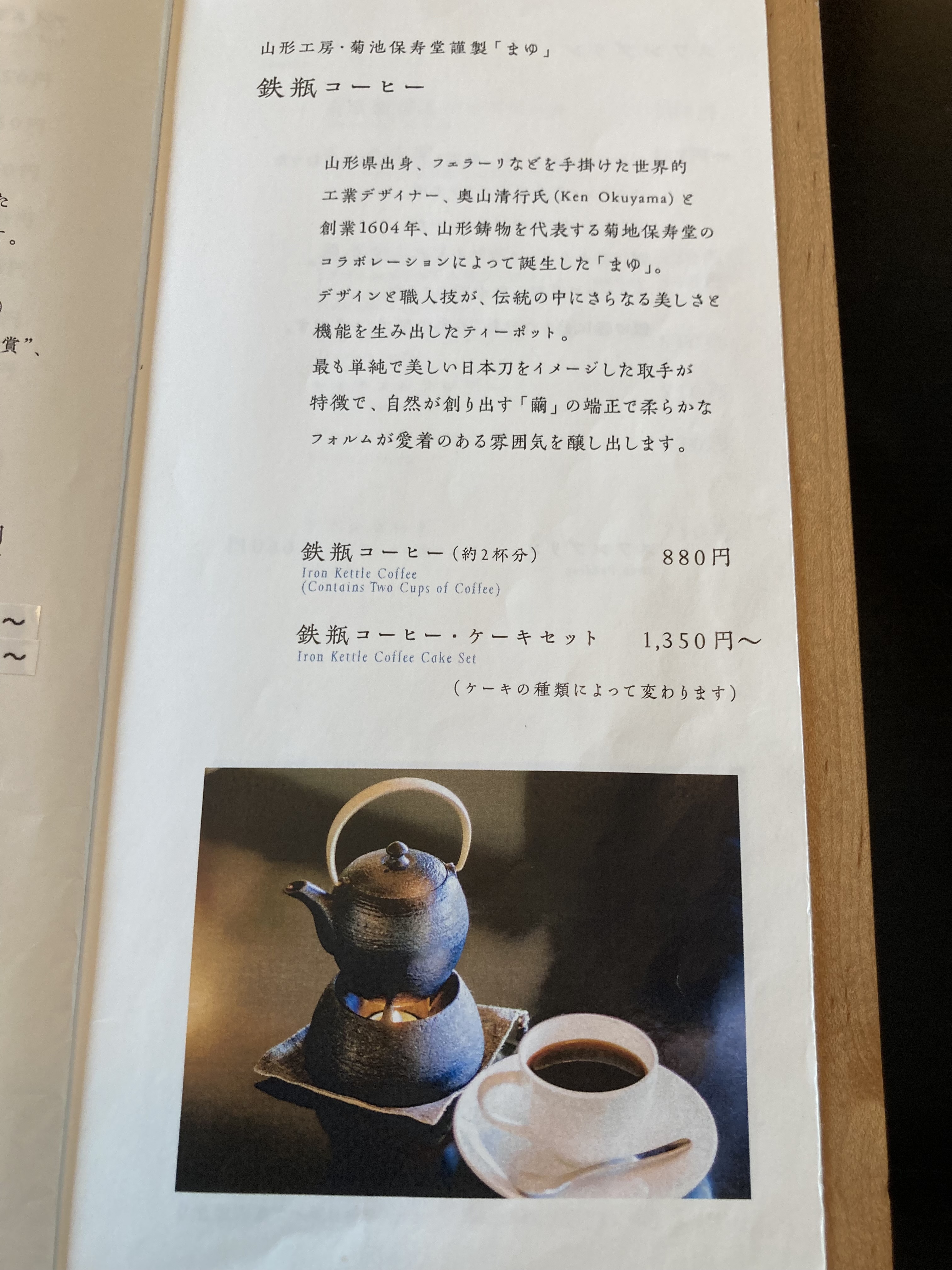 鉄瓶コーヒー、最後までアツアツ、力強い味わいでプリンによく合います。