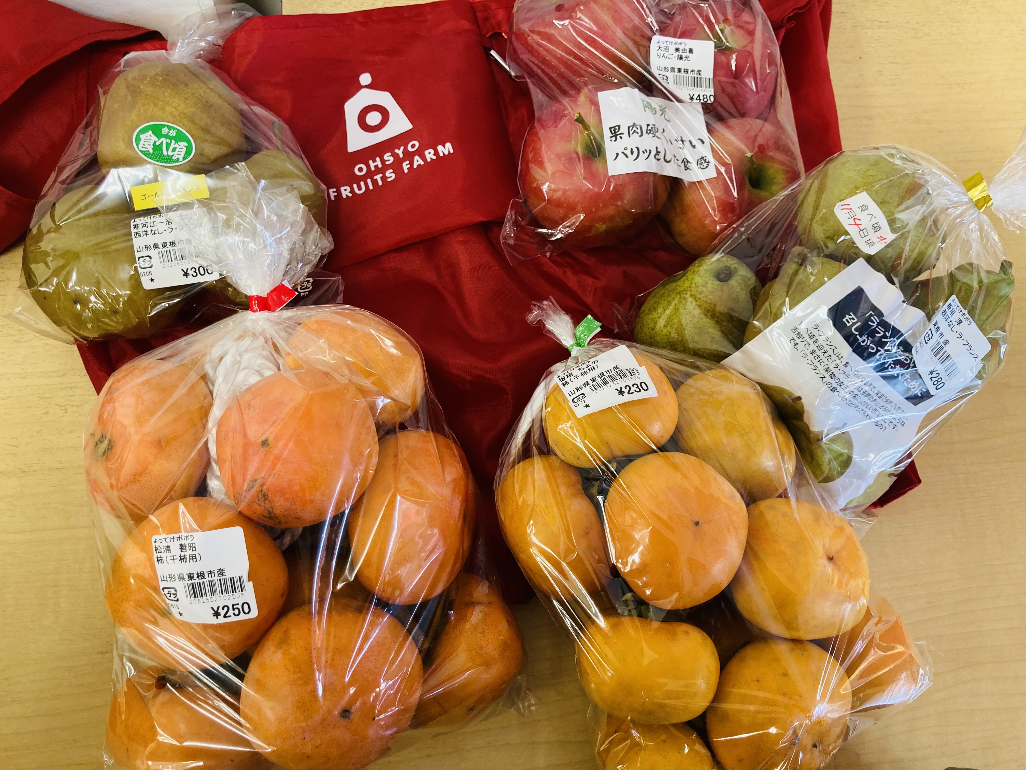 干し柿用の渋柿2袋、ラフランス、ゴールドラフランス、りんごを選びました✨