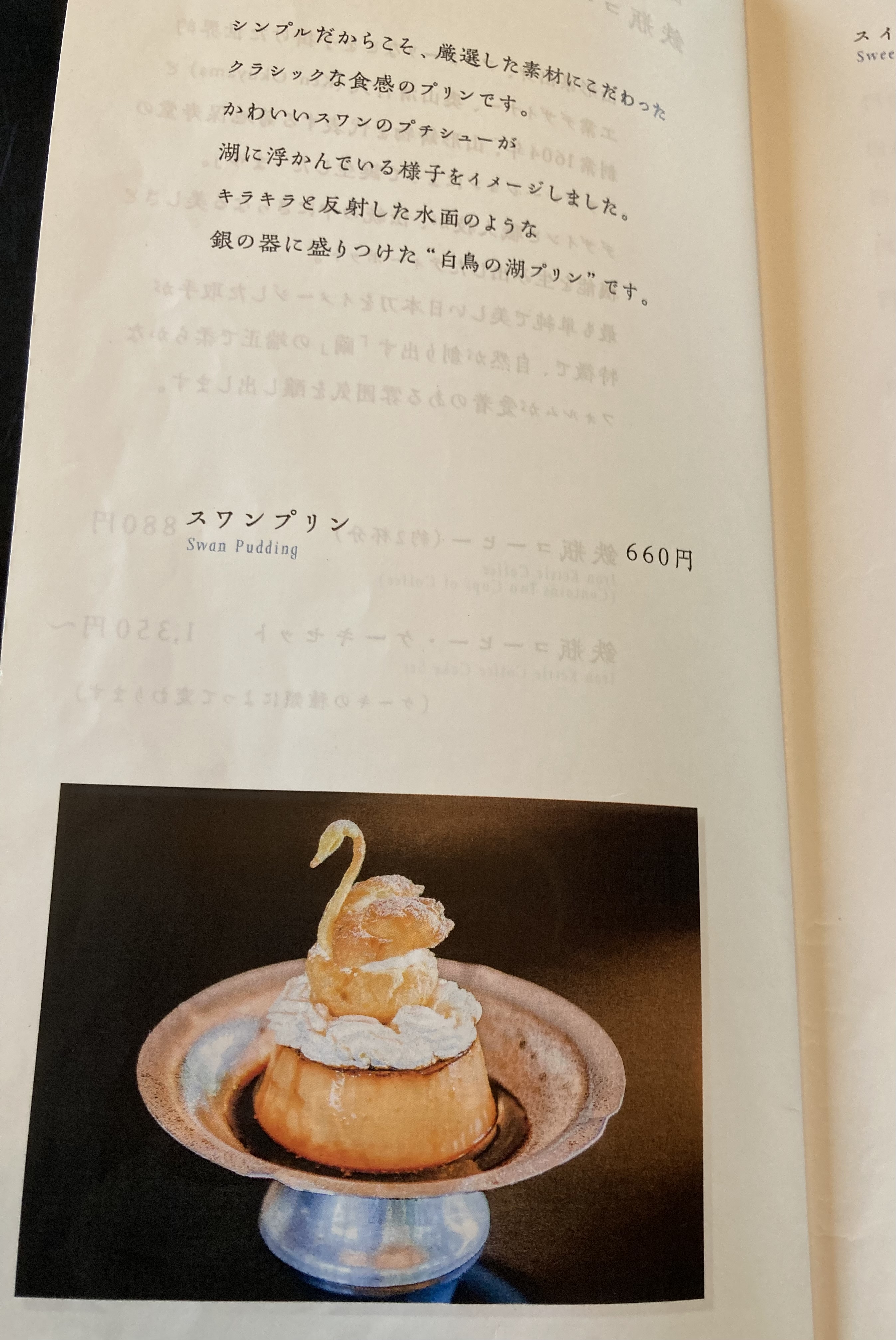 スワンプリンはスワン部分がアイスとシュー皮でできていて、もっちり固めプリンはほろ苦カラメルが大人味で最高。