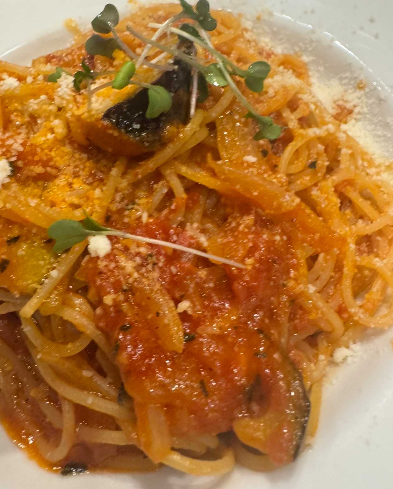 おはようございます 、、今朝は朝からお客様の告別式に11時〜なので早めに御線香とお顔を、、いい顔してましたつとむさん、安らかにからのギリギリ間に合ったLARAランチ!!YES、ど満席ありがとうございました╰(*´︶`*)╯日替わり1200円茄子とオニオンのアラビアータ昼ベツ@ベツプリオさんとナミさんさてさて今夜は24名貸切っす!