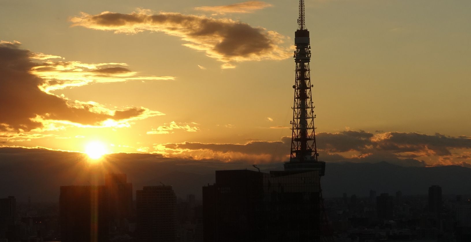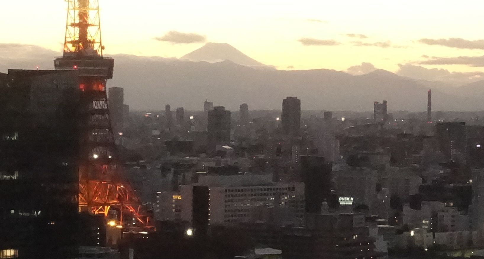 日知没時には雲に隠れていた富士山も 東京タワーがオレンジに輝きだすころには