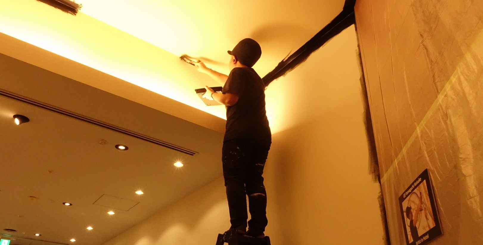 今 ホテル内で展示会を行っている作家さんが 地下2階の入り口の部分を