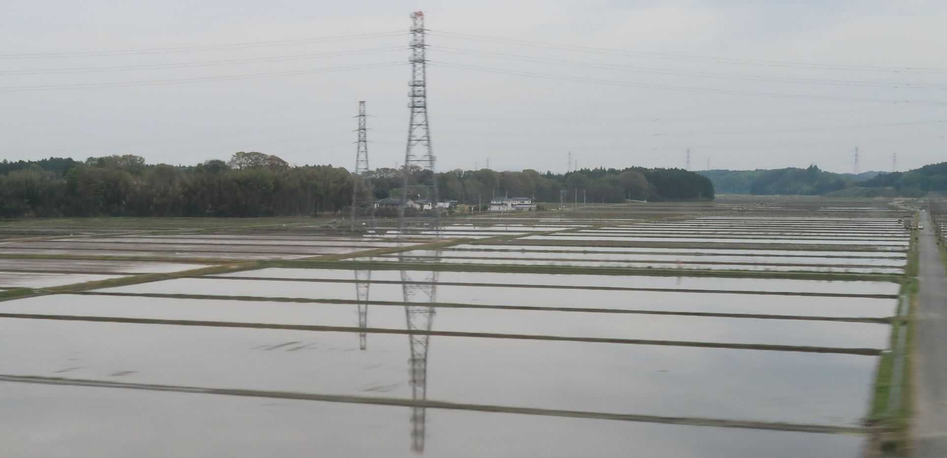 戻ってくる新幹線の車窓から水の入った水田が見られましたから