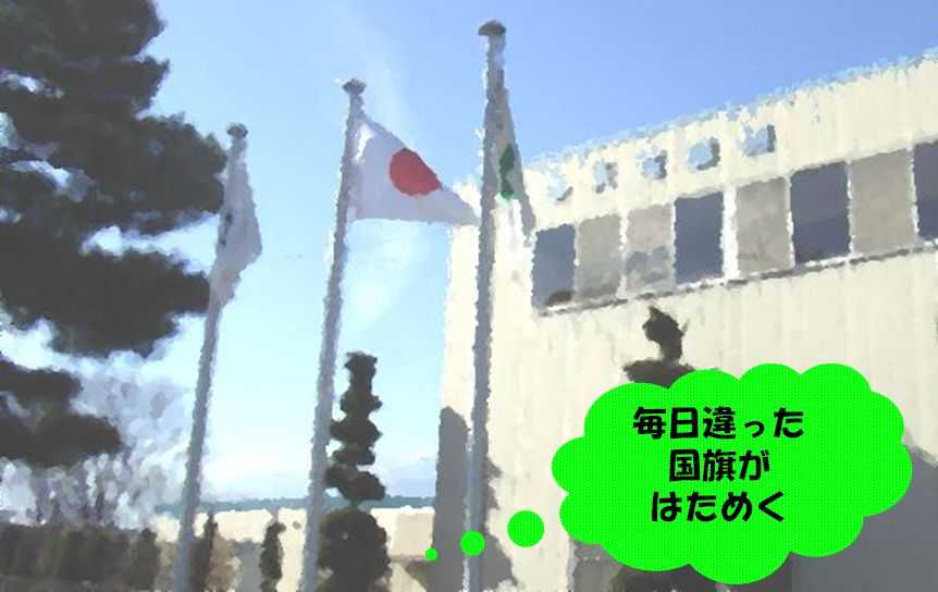 「国旗掲揚塔に毎日違った国旗はためく姿」「いろんな国の言葉で挨拶する社員」