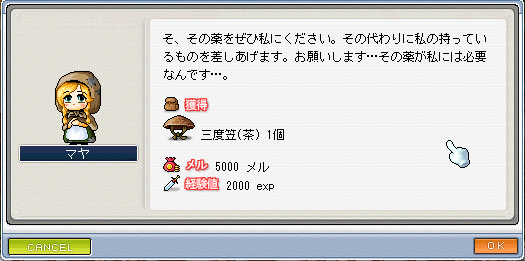 クリアしましたよ、マヤのクエストwオクトパスのすりぴマップではジュニアネッキに殺されかけて薬代がバカにかかるので、カニングのところで狩りました予想以上に、足が出ないwってか、なんで石にするのにこれがいるんだ・・!とか呟きながらもできました。証拠の写真です さんどがさは後々役立つので結構ウレピーです。あとは、修行者クエストですね。緑キノコとツノキノコとゾンビキノコを99匹ずつ倒すやつ。緑キノコとツノキノコは終わりますたwおかげで白い薬が結構あります。黒字でさあ、だんな様(しばらくカラミティATでがんばります。それでは!(=`∀)ノβye°βye~☆