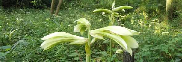>小山内裏公園内ウバユリの谷で、満開となった「ウバユリ」の群生を、写メにゲットしました。今年は盗掘の様子がなく、安心でした!!
