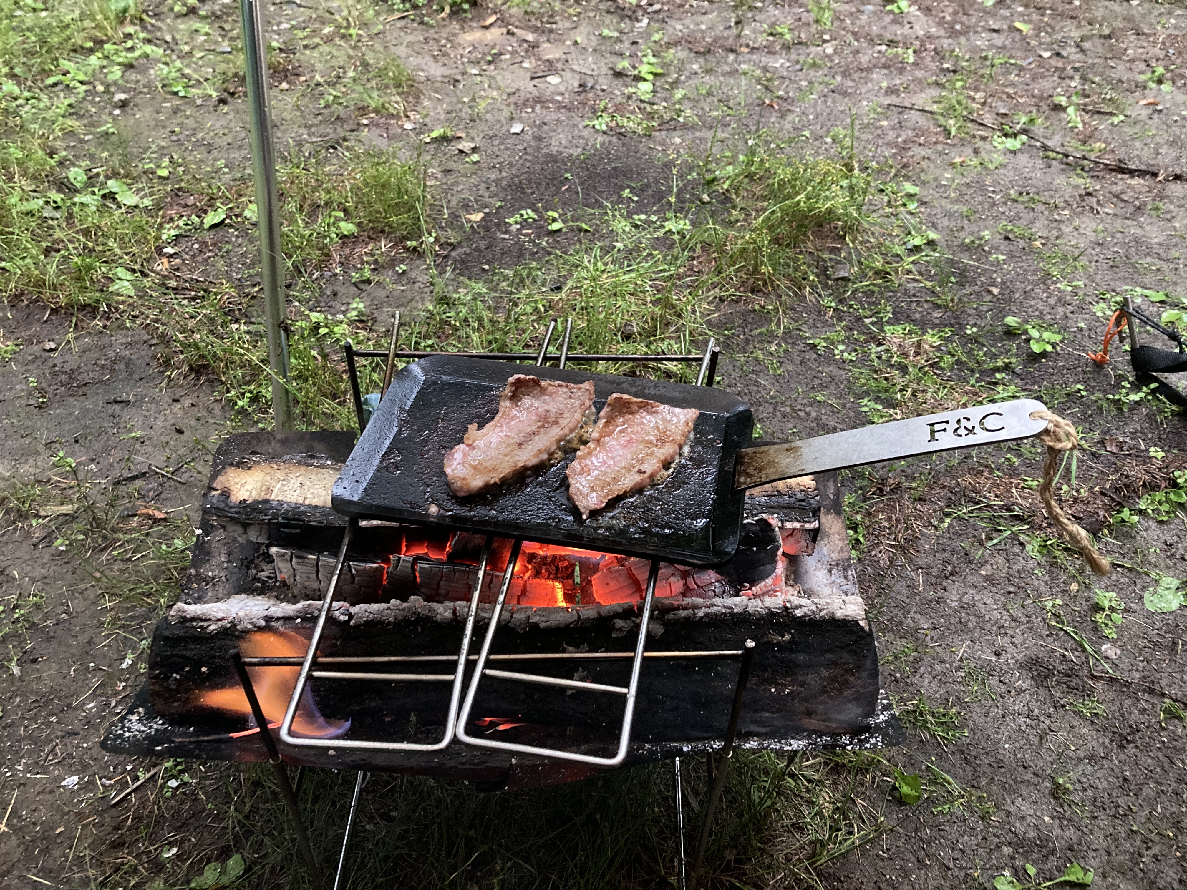小さなひさしでなんとか焚き火を起こし晩餐を始める。