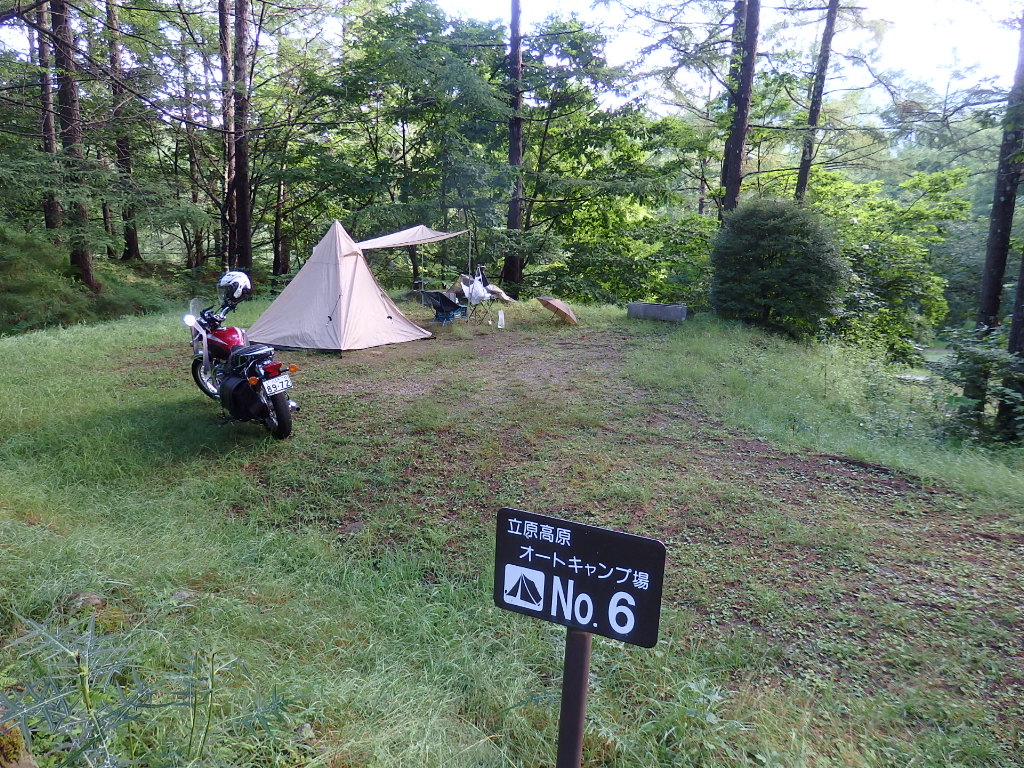 今年も尋常じゃない暑い夏を迎えた。今年初めてのキャンプツーリング。平地は35℃前後の猛暑。こうなったら標高の高いキャンプ場に涼を求めようということで立原高原キャンプ場を目指す。