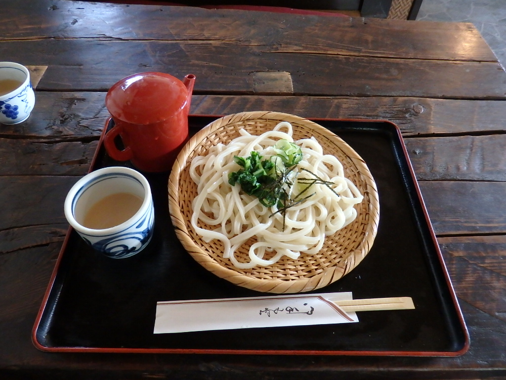 途中にあった手打ちうどんに戻る。このうどん屋はなかなかレトロな雰囲気。つけ汁もごまで美味。