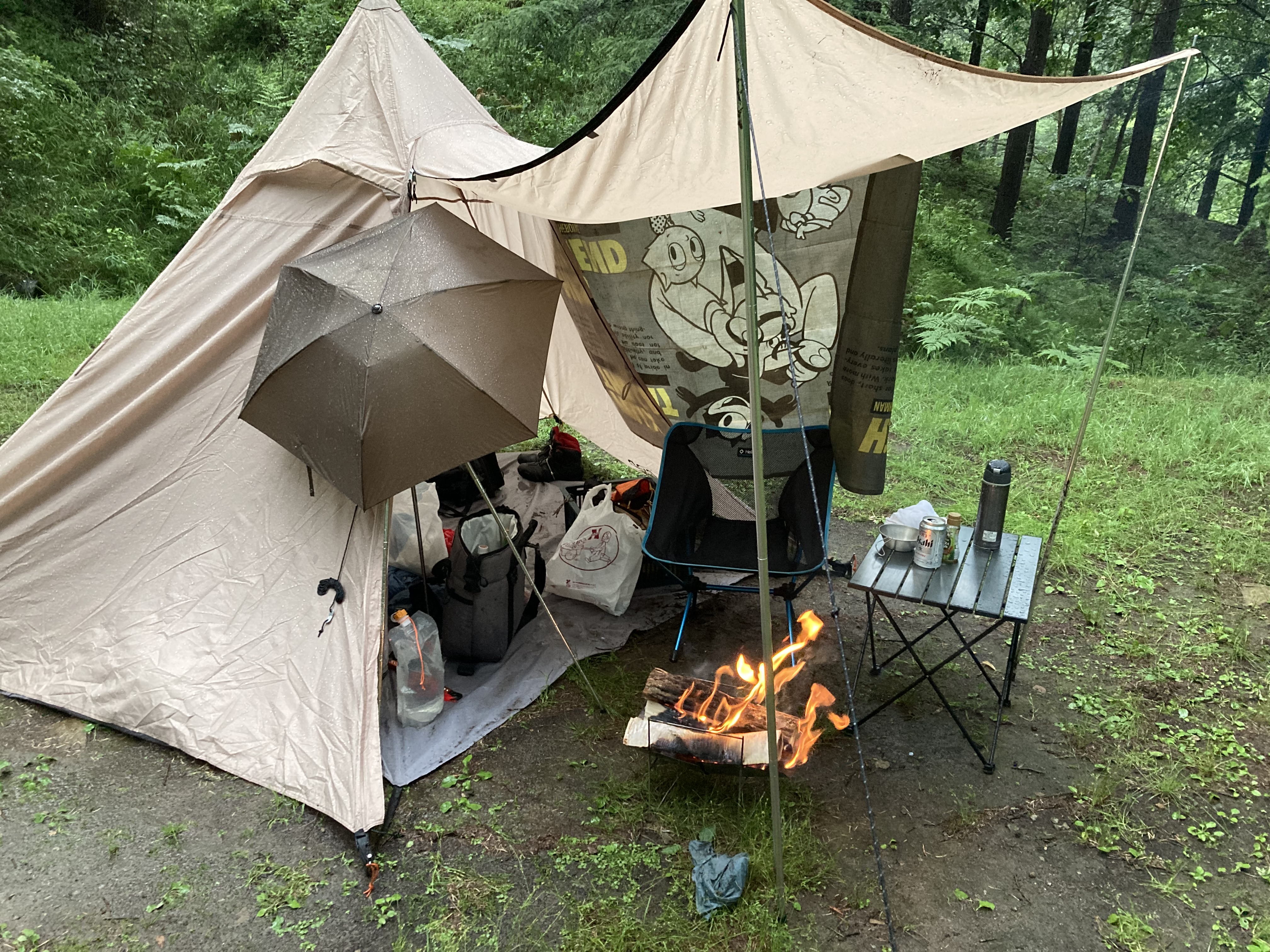 設営している最中から雷の音が、、、。設営を終える頃には雨がパラパラと、そして鬼のような土砂降りに。