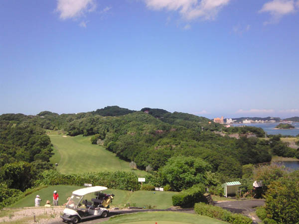 いつもはアイアンだけで回れるショートコースがゴルフ初心者である私の腕前。先日、彼女のお父さんから「お盆休みは本格的なコースに行ってみよう」とお誘い頂きまして、どうやら私はお父さんに気に入って頂けたようですので、すごく嬉しい反面、ドライバーが下手っぴですので、緊張ばかりしています。そこで秘密の特訓を始めることにしました。練習の相棒は会社の後輩である山ちゃんと、いつものたっさん。たっさんは2年も前からゴルフをやっていますので、私なんかよりも遥かに上手にプレーします。山ちゃんは私と「どんぐりの背くらべ」といったところでしょうか。ともあれ仲良く練習場でいっしょに汗を流しています。さて今日の日記は、この週末の出来事について。私は月曜日が仕事でしたので、土曜日と日曜日だけたっさんに遊んでもらいました。遊び場は和歌山県の白浜。土曜日に釣りをして、一泊。日曜日は朝6時前に起床し、ゴルフ。白浜ビーチゴルフ倶楽部というところへ行ってきました。海が良く見えるゴルフ場で、いわゆるリゾートってやつですか。コースの長さはレギュラーで5889ヤード。もちろん、殆どのコースでドライバーを使用します。前半のOUTコース。短気者の私は、ドライバーどころかアイアンまで思うように打てず、頭から湯気が出るがごとく怒りながらプレーしました。と、ところが。後半のINコースではどういうわけか突然打てるようになりまして、パーも1つ取らせて頂きました。結果、私の成績は126です。もちろんたっさんは私よりも良い成績ですが、私の成績を見て「始めてなのに、すごすぎる!」と誉めてくれましたよ。これで彼女のお父さんの前でも恥をかくことなくプレー出来れば良いのですが・・・。ともあれ、南国の強い日差しの下、ゴルフをするのがこんなに楽しいとは思いませんでした!やっぱり夏は良いなぁ~。