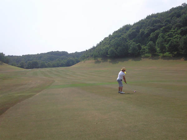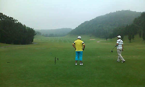 たっさん、山ちゃんとで加西カントリークラブへ行ってきました。今日はハーフだけのラウンドでだったけど、山ちゃんにとっては初めての本コースでした。私にとっても2度目の本コースでした。早朝6時43分(アウトコース)スタートでしたので、道中は眠気に襲われましたが、いざプレーが始まると眠気はどこへ行ったのやら。楽しそうにドライバーを持っているのはたっさん。そして鮮やかなのは私。やる気満々のカート。これは山ちゃん。プロみたいでしょ?山ちゃんはこの麦わら帽子を被ると、すこぶる調子がよくなります。成績はというと、たっさんが55(だったかな?)、山ちゃんは64。私は63でした。ゴルフ経験がたったの3ヶ月の私たちとしては、他のお客さんの迷惑とにならないように、常に走っていますので、非常に疲れます。でも楽しいから、いいんだけどね。でもでもまだまだ上手くなりたいなぁ。