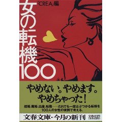 前々回のアップで、"仕事が変わった"という話をちらっとしましたが、決して今の職場を辞める、というわけではなく、簡単に言えば、業務の担当が変わった、というか。・・・まー、難しく言いようもないか。(笑)あたしの仕事は、これまた簡単に言うと、留学関連の手続き事務がメインの仕事で、まーそこに、広報関係物(パンフ、チラシ、HPの構成、メルマガ)の企画・作成とか、電話での問い合わせ対応とか、課の人事的・経理的処理とか、時々、説明会とかオリエンテーションの進行とか、空港送迎や子どもの短期ツアーの引率なんかがからんでくる。その担当する留学のタイプが今回変わりました今までは、中学・高校生を対象とした、正規の長期留学だったんやけど、夏からは、もっと幅広い、1週間~4年ぐらいまでの、短期・長期・趣味・専門・大学などを含む、大人の留学担当に。そして、代理店をしている某保険会社の発券担当者にもなってしまいやした実は、前から一人スタッフに欠員が出ていて、しかも、さらに他のもう一人も、長年つき合っている彼氏と最終的に結婚するためにも、アメリカに渡るということで、7月はじめに辞めることになり。まー、そのポジションのために、また新しい人を雇うんだろうな~と思ってやけど、なんとあたしが、その人の後を引き継ぐため、担当が変わることになりました・・・。そのことを話すために、上司から呼ばれた時は、一体何事?!と思ったり、実際に聞いて、意外な展開に驚いたりもしたけど、まー、タイミング的にはよかったかも、と思った。前の日記にも書いていた通り、正直今の仕事に行き詰まりを感じていたし、自分でもどうしたらいいかわからんくて、もがいてた感があった。もういっそ辞めてしまったら楽になるんかな、とずいぶん長い間一人でもんもんと考えてた。でも、今回の担当替えで、ちょっと気持ちが楽になった部分があった。もちろん、担当するお客さんの年齢層や範囲は、これまでの何倍にも広がるし、覚えなきゃいけんこと、勉強せなあかんことは膨大にあるけど、新しい仕事を覚えることで、また新しい視点や考え方も得られるやろうし、おのずと自分の興味や関心も、広がっていくような気がするし。(たとえば、今まで担当していたのは、英語圏のアメリカ/カナダ/オーストラリア/ニュージーランドやったけど、今は、新しい担当の方で取り扱いのある、イギリスやアイルランド、マルタなどの他の英語圏の国、英語以外のヨーロッパの国にも関心と知識を持たざるをえなくなる)もちろん仕事やから、自分にとっていいことばかりではないし、与えられた業務をしっかりこなしていくことが最優先やけど、少なくとも、今の馴れた生活に新しい風が吹き込むような気がしてる。ちょっとした一つも"転機"かもしれんね。自分が起こしたものではないし、予想外の棚ボタてきなもんですが。(笑)・・・今これを書いていて、以前に古本屋で見かけて思わず買った、「女の転機 100」(CREA編:文春文庫)っていうのを、なんとなく思い出した。(笑)【恋愛、結婚、出産、離婚、転職、病気… 女性の誰もが生涯に一度は直面するさまざまな転機を、 アンケートによる20代から40代までの100人の女性の実例で考える。 医師になった主婦、ガンを克服したフードコーディネーター、 香港で活躍するファンドマネージャーなど、 女性としてのハンディにもめげずはつらつと生きる姿を紹介する(amazonからの内容抜粋)】この本にもあるように、もちろん、転職とか、結婚とか、出産とか、学業とか、自分が選択したことが転機になって、その後の人生が変わった人もいるやろうけど、自分で選択の余地がない、夫の浮気とか、人の死とか、自分の病気とかが、思わぬ転機になることもある。今まで当たり前と思っていた生活が、好むと好まざるにかかわらず、がらっと変わるきっかけになる。それは経済的にだったり、身体的にだったり、精神的にだったり。それが普段想像もしてなかったようなことであればあるほど、衝撃は大きいし、それに適応するためには多大なる時間とエネルギーがかかる。でも、それが、"人生って甘くない"って身に沁みたり、"何が起きるかわからへん"って思ったり、でも、"だからこそいい時があれば悪いこともある、悪いこともあればいいこともある"、"何が起こるかわからんから、面白いんやよなぁ"と実感できるんかもなぁ。その時はめっちゃ辛かったり、すごく時間がかかったとしても、ね。私の今回の担当替えは、皆々様のいわゆる"転機"に比べれば、どってことない、よくある、取るに足らないことだと思うけど、今後自分にとって、どういう影響や考えを及ぼすか、自分自身、ちょっと興味があります。まー、今はこんなふうに言っていても、時間が経って、新しい業務に忙殺されるようになると、あんだけ愚痴っていた元担当の業務も、「あぁ、あの頃はよかったなぁ・・・」って感慨深げに振り返る時がきたりして