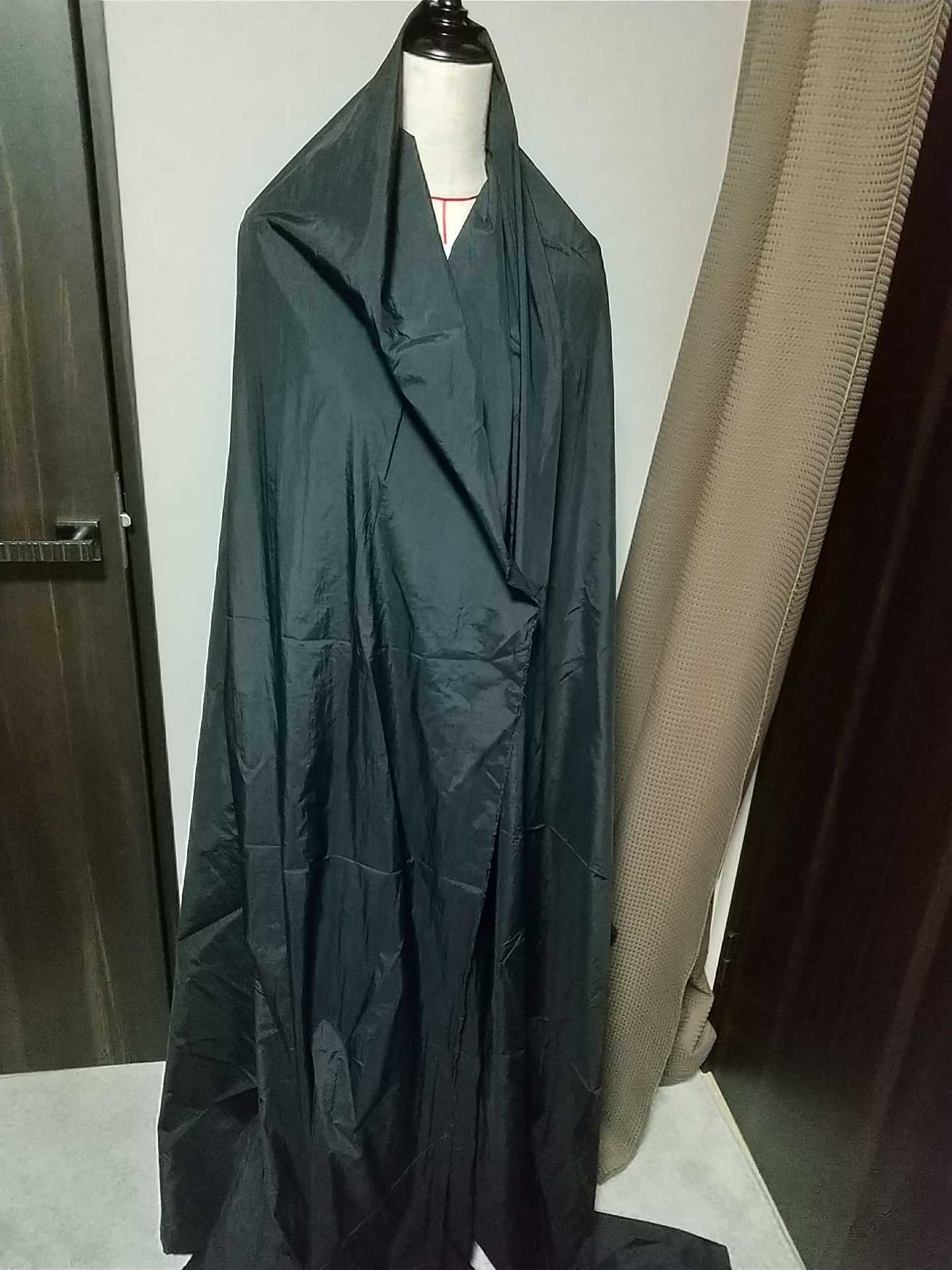 去年の1月に日暮里トマトで購入したモヘア混のウール生地。色は黒です。厚くも薄くもなくて、表面に凹凸がなく、光沢がほんのりあって(マットさがない)、黒は黒でも重さがありません。触り心地は、さらっとしていて、ハリがあります。冬に買った生地だけど、春、夏、秋向きの生地だと思います。 ↓アップにしたところ。光の反射でグレーに見えますがまっ黒です。1m1580円で1.5m買いました。当時は安い生地ばかり買っていたので、高いな~と思いましたが、改めて見てみると、とってもいい生地でした。高級感があります。これでパンツを作る予定ですが、スカート、ワンピース、ジャケットとかにも合いそうです。きちんとした雰囲気のものができそうです。