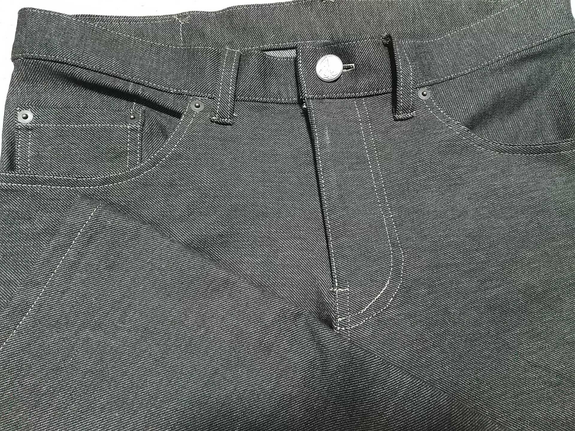 日暮里NAGATOさんでストレッチデニム生地を購入しました。色は黒に近いチャコールグレー。写真だとどうしても白っぽく写ってしまいます。ストレッチ具合は、横にしか伸びないと思って買いましたが、縦横に伸びるタイプでした。厚みは、厚すぎず薄すぎず。パンツ、スカート、ジャンパースカートに適した厚さだと思います。1mあたり1200円。幅は150cm位あるかも。2.5m買ったので、ジーパンを2枚作るつもりです。それから、生地にゴムが織り込まれているせいか、アイロンをかけているときに、タイヤのような匂いがしました。